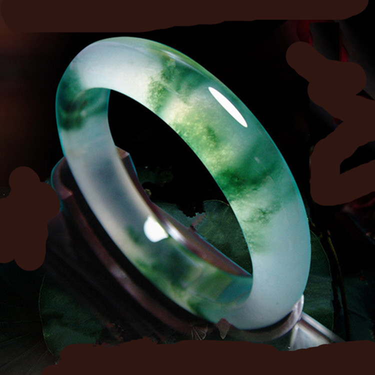 批发女款冰种飘花玉镯三段飘绿花石英岩质玉石手镯翡翠色玉 阿里巴巴
